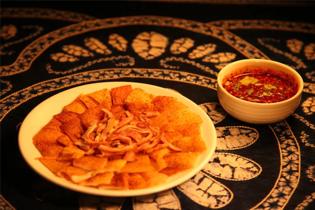 大理口味偏酸和辣,從火燒豬生皮,到木瓜、梅子等酸果入菜的酸辣魚,到“牛奶做成片片賣”的乳扇,再到“菊花手上開”的雕梅,是大理人一年四季離不開的美食。