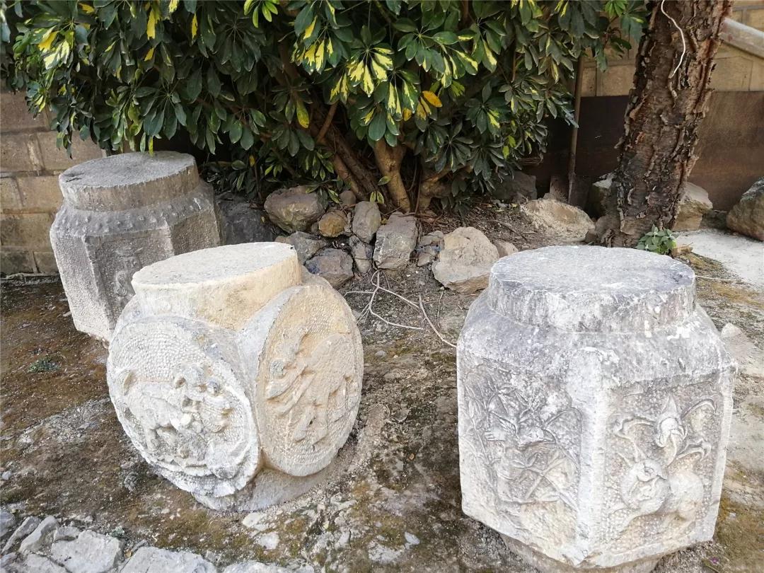 白云寺有一些柱墩,很值得一看,有人推斷是明代所造。柱墩材質為青牛拐子石,質地堅硬,沒有容易雕琢的紋理,在這樣的材質上弄浮雕,可想而知,難度是非常大的。柱墩有棱形四面六面和圓形圓面兩種,面上雕有花草蟲魚鳥獸、馬匹、大象、麒麟等物。這些柱墩雕工略顯粗糙,所雕動物結構比例夸張變形。比如馬匹脖子粗壯,身子縮成一團如球形;叼花松鼠身軀肥大,花枝則更大,簡直是松鼠的遮陽大傘。然而這樣的變形夸張卻更符合人們的認識,符合中國古典藝術里的寫意,馬匹四蹄騰飛,自然是頭頸往前伸,后部使力,自然腹背就要縮成一團,就好像彈簧,壓縮得越小,彈得就越快越高。可以想見,柱墩上的每一幅浮雕,都是雕刻者深思熟慮、匠心獨運的結果。