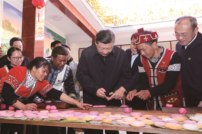 李發順邀請總書記一起制作佤族新年傳統食物大米粑粑。