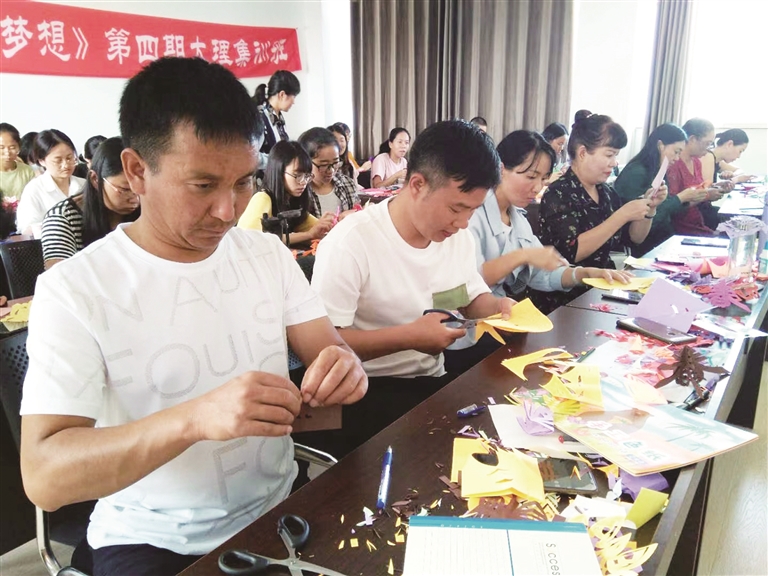 2019年至今,馮楠還受大理州教育局邀請,給全州各小學兼職美術教師進行了3期的剪紙藝術培訓,參訓人數達700多人(次)。為了能讓更多的人了解剪紙文化,2020年底,馮楠還和三位巍山籍藝術家在巍山縣南詔博物館舉辦了“藝語·初心——梓里四人藝術聯展”,展出了自己創作的《南詔古都》《和諧回村》《金玉滿堂》《一碗人間煙火》等各類題材的剪紙作品,讓觀展人深深體會到了剪紙藝術的魅力。