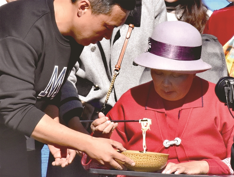 “來到大理,我非常高興,也實現(xiàn)了我的心愿。”在歡迎儀式上,大鵬母親身穿紅色上衣,笑容滿面地分享了到達大理的喜悅心情。大鵬母親因病發(fā)聲較為困難,一句簡單的話語,卻滿載著她心愿實現(xiàn)的激動心情。