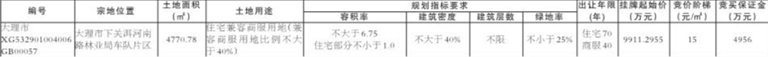經(jīng)大理市人民政府批準(zhǔn),受大理市自然資源局委托,大理市土地收購(gòu)儲(chǔ)備交易中心以掛牌方式出讓大理市XG532901004006GB00057號(hào)宗地的國(guó)有建設(shè)用地使用權(quán)。現(xiàn)將有關(guān)事項(xiàng)公告如下: