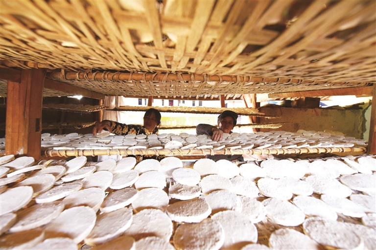近年來,巍山縣充分利用碳酸與硫磺混合溫泉“南詔湯池”資源優(yōu)勢(shì),因地制宜引導(dǎo)農(nóng)民發(fā)展土堿制作產(chǎn)業(yè)。傳承千年的土堿制作工藝需經(jīng)過整墑、灑水、取土、過濾、熬制、拓堿等十幾道繁雜工序,土堿制作因此成為當(dāng)?shù)剞r(nóng)民增收致富的新興產(chǎn)業(yè)。像賀國璋戶一樣,洗澡塘村從事土堿制作的農(nóng)戶達(dá)30多戶,堿田面積達(dá)30多畝。現(xiàn)在,洗澡塘村依托“南詔湯池”旅游資源優(yōu)勢(shì),每年冬春季節(jié),堿田晾曬、土堿制作已成為外地游客到鄉(xiāng)村參觀游覽的一張亮麗名片。