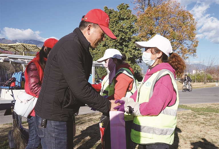 本報訊(通訊員 楊潤婷 錢娜文/圖) 時值臘月,寒意正濃。1月7日,大理市總工會積極開展慰問活動,為洱海生態廊道的安保人員、保潔人員送上溫暖禮包,將黨和政府的關懷送到了洱海保護一線。