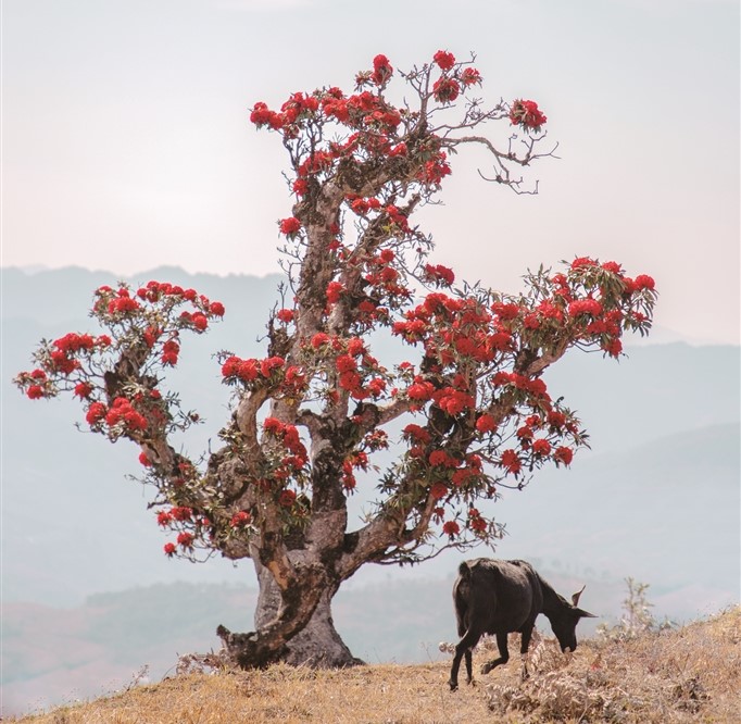 石竹村峰巒相聚、地勢復雜,森林覆蓋率達86%,海拔2400米左右,得天獨厚的自然優勢造就了石竹杜鵑花的獨特之美。在石竹后山,擁有黃杯杜鵑、白雪杜鵑、團花杜鵑、寬種杜鵑等20余個杜鵑品種。更有樹齡100多年、樹干粗2.86米的“百年花王”,每到花期,繁花萬朵,獨樹成春,蔚為壯觀。