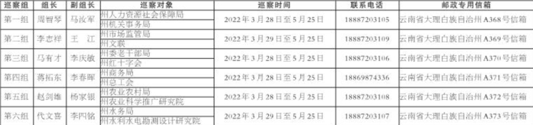 根據州委統一部署,九屆州委第二輪巡察于2022年3月22日啟動,州委派出6個巡察組,采取“一托二”的方式,對12個州級黨組織開展常規巡察。截至3月29日,州委各巡察組已全部進駐被巡察單位開展巡察工作。現將各巡察組進駐情況及聯系方式公告如下: