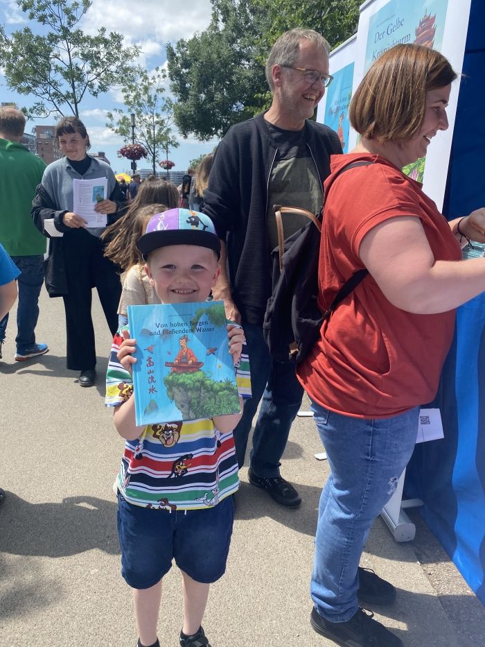 2022年是中德建交50周年,也是武漢與杜伊斯堡市締結友好城市40周年。在龍舟賽期間的贈書活動上,武漢國際傳播工作室聯合德國明斯特中國研究中心和德國湖北友好協會將100本德文版繪本作品《黃鶴樓童話故事》《知音故事》和2000張印有武漢童話故事的明信片贈送給杜伊斯堡市政府、龍舟節組委會和現場觀眾。