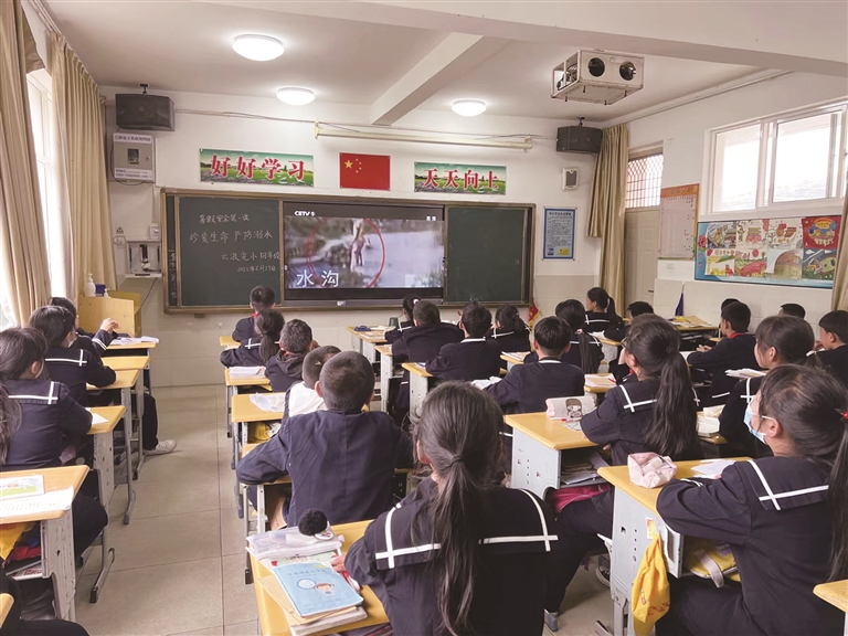 6月28日,大理市鳳儀鎮云浪完小組織學生觀看防溺水知識宣傳片。