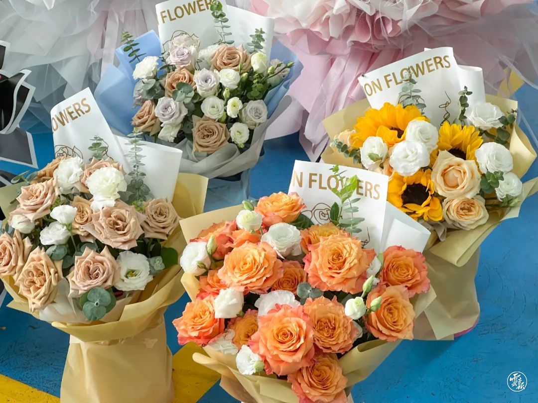 除了傳統(tǒng)的歐式花束,韓式復(fù)古花束、法式自由浪漫花束、俄式包裝的圓形花束、紙袋花束、ins風(fēng)透明包裝花束都大受游客喜愛,滿足不同年齡段的需求。