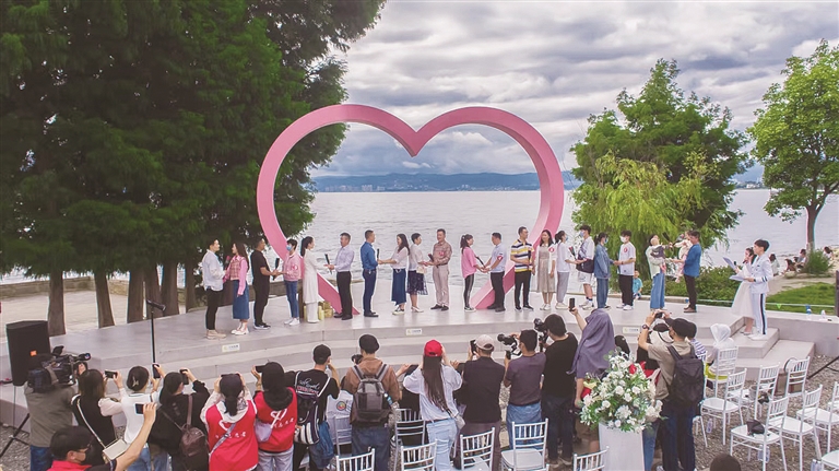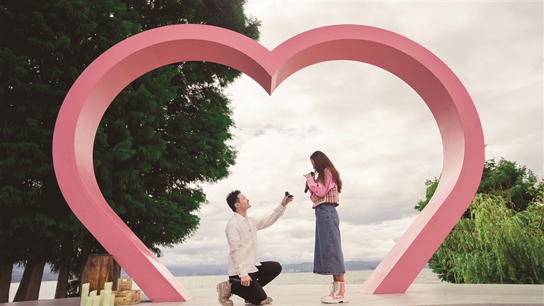 近來,“浪漫經濟”在大理持續升溫,“最佳愛情表白地” “婚禮目的地”成為大理新名片。