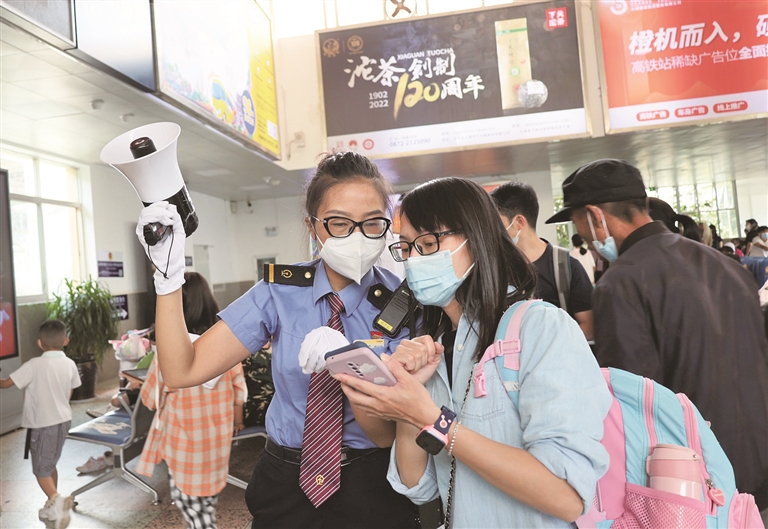 說起近段時間工作的辛苦,大理火車站客運員段靜卻笑著告訴記者:“雖然工作任務很緊,但我們每一個人都在認真做好自己的本職工作,看到旅客滿意的笑容和對我們工作的點贊認可,我覺得再辛苦也是值得的。”