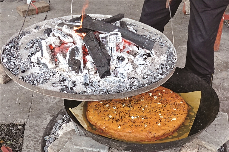“嘰秋嘞!餅子烤出么,音秋香!”