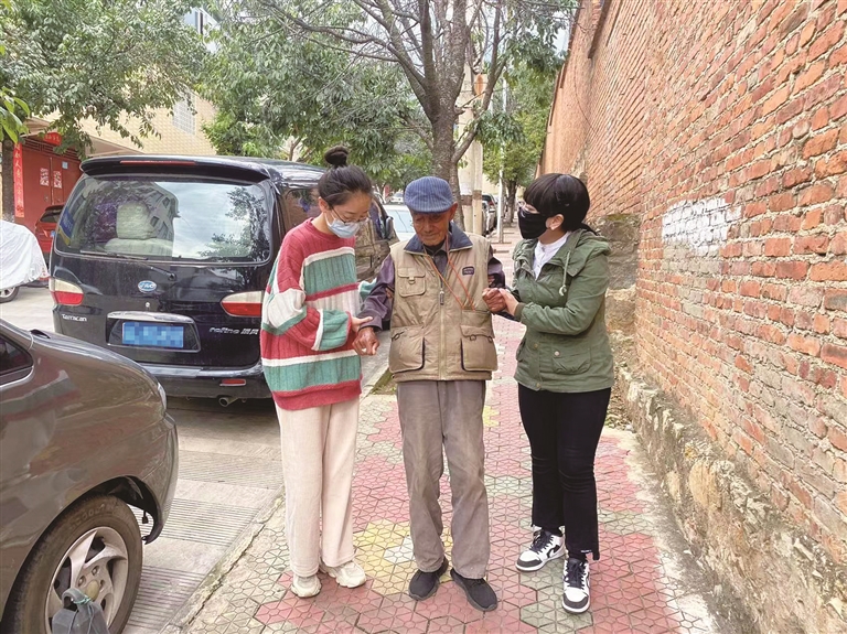 “快!路邊有位老人摔倒了,已經(jīng)將他扶起來,但不知道老人是誰家的,你們趕快過來看看吧!”9月15日上午,大理市太和街道關迤社區(qū)接到“雙報到”黨員志愿者沈子榮的電話后,工作人員第一時間趕往現(xiàn)場處置。