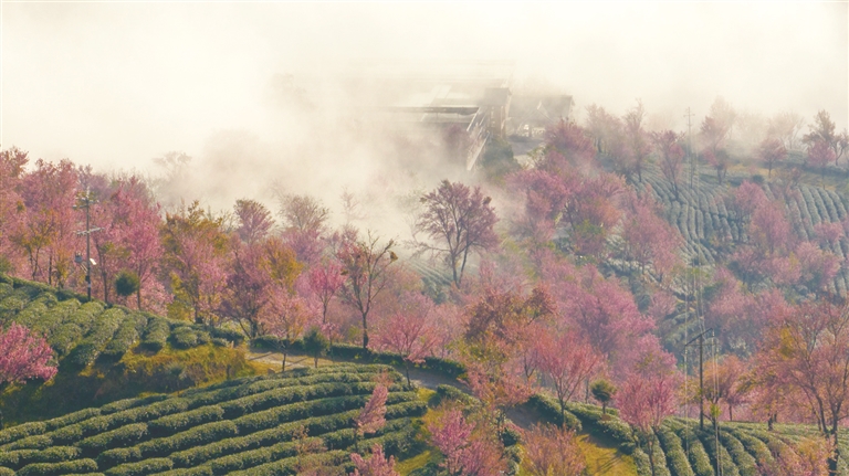 冬天到南澗無量山櫻花谷追逐浪漫,一直是攝影人每年的期冀。近日,無量山櫻花谷最佳觀賞期如約而至。云霧繚繞間,如黛遠山和高山茶園若隱若現,一簇簇櫻花燦若云霞。美妙畫卷,引人入勝!(攝于12月13日)