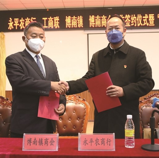 在“萬企興萬村”行動中,永平縣工商聯、永平農村商業銀行組建工作專班,下沉11家商(協)會,走訪、收集、梳理、匯總所需、所求、所盼,達成“金融+商會”賦能新發展合作共識。永平農村商業銀行負責打通金融服務“最后1米”,常態化開設綠色通道,當好金融服務“店小二”。