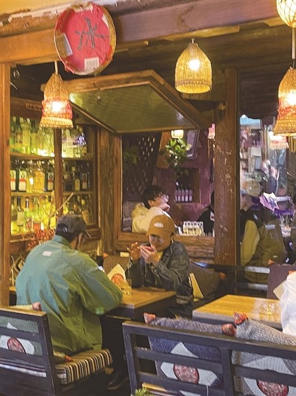 ⑤ 1月14日晚,游客在大理古城洋人街一家咖啡館休閑。