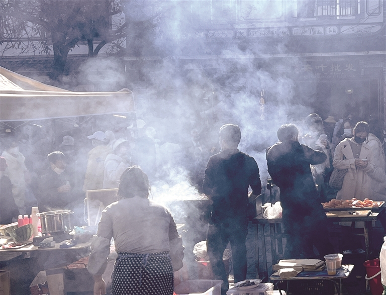 臨近中午,集市的熱鬧仍在持續,人流仍在蒼山腳和中和門之間涌動。在這份熱鬧里,藏著濃濃的人間煙火氣,藏著濃濃的大理年味,還藏著人們對美好生活的濃濃期盼和祝愿。