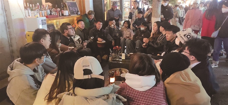 入夜,洱海生態(tài)廊道陽南溪段“知意小院”內(nèi),幾名年輕游客正圍爐煮茶。暖色燈光下,幾人圍爐而坐,邊品茶邊彈奏吉他,動聽的樂曲引得鄰桌客人也靜靜聆聽,場面溫馨動人?!白罱@段時間,洱海生態(tài)廊道的游客明顯增多,我店里的生意也很好,每天都有十幾桌客人。”小院老板告訴記者,小院剛開業(yè)不久,沒料到會有這么多客人。