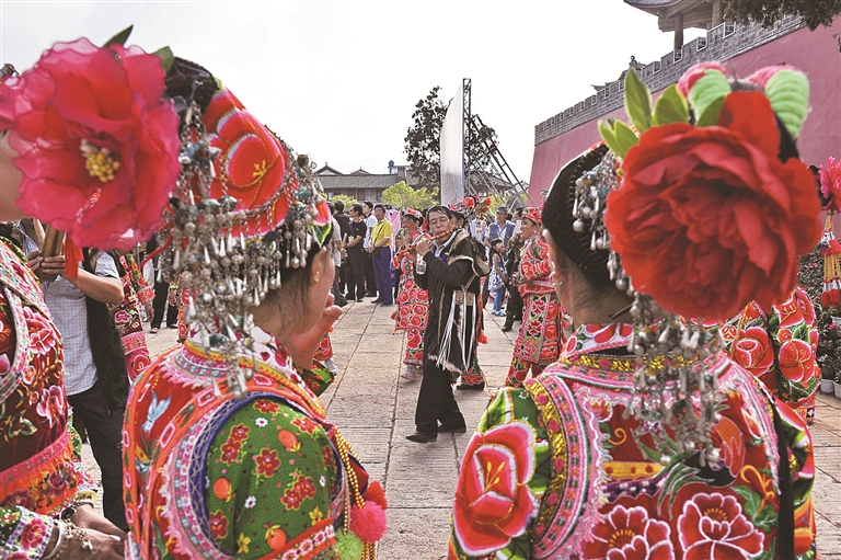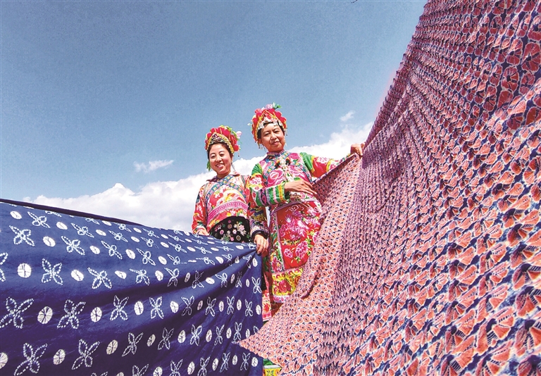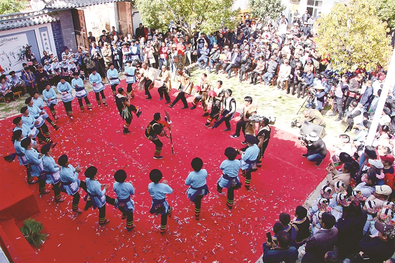 巍山還保留著大量豐富多彩的非物質文化遺產,有各級非物質文化遺產保護名錄89項,其中國家級1項,省級5項,州級11項,縣級72項;有代表性傳承人有110人,其中國家級1人,省級7人,州級22人,縣級85人。國家級非物質文化遺產彝族打歌是當?shù)厍О倌陙砹鱾飨聛淼拿耖g喜聞樂見的自娛性集體舞蹈,也是巍山縣流行最廣的少數(shù)民族文化。早在20世紀50年代,巍山馬鞍山青云打歌隊就進了北京,向首都人民獻藝;20世紀80年代,巍山打歌隊一行十二人以云南民間藝術團的身份東渡日本,參加東南亞民族民間藝術節(jié),先后在日本的東京、大阪、名古屋等六大城市公演,受到國際友人的熱烈歡迎;近年來,彝族打歌多次參加“CCTV中國民族民間歌舞盛典”,同時成為云南師范大學藝術系學生的選修內容。巍山扎染工藝獨特精美,傳統(tǒng)圖案有喜鵲梅花、龍鳳呈祥、松鶴延年等,有服飾、壁掛、桌布、門簾等多個旅游紀念品種類,2000多個扎染品種,是國內外游客搶手的旅游紀念品和饋贈佳品。