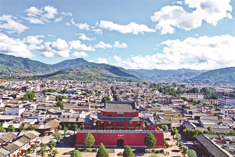 進入巍山古城,邁步間就仿佛回到了遙遠的明清時代。古城始建于西漢元封二年,成型于明洪武二十三年(公元1390年),距今已有600多年的歷史,古城城方如印,中心鐘鼓樓如同印柄。隨著時代的變遷,北門拱辰樓已成為古城的標志性建筑。站在城樓上看出去,24條街18條巷縱橫交錯,能一覽明清時期的棋盤式布局。走在彎彎窄窄的小巷里,有散發(fā)著歷史韻味的泥墻和泥瓦陪伴,一棟棟“三方一照壁”“四合五天井”的古民居,如一顆顆璀璨的寶石,隨意鑲嵌在古城的各個角落。目前,巍山古城現(xiàn)有古民居古院落158處,巍山縣加大古城古民居保護力度,確立了古民居主要用于客棧、餐飲、文化傳播等與旅游文化產業(yè)發(fā)展相關的行業(yè),通過嚴謹修繕,巍山古城的部分古民居已變成了向公眾敞開大門的民居客棧、特色餐飲店、文化場所,既有效助推了全縣旅游文化產業(yè)的發(fā)展,又使古民居得到有效保護。