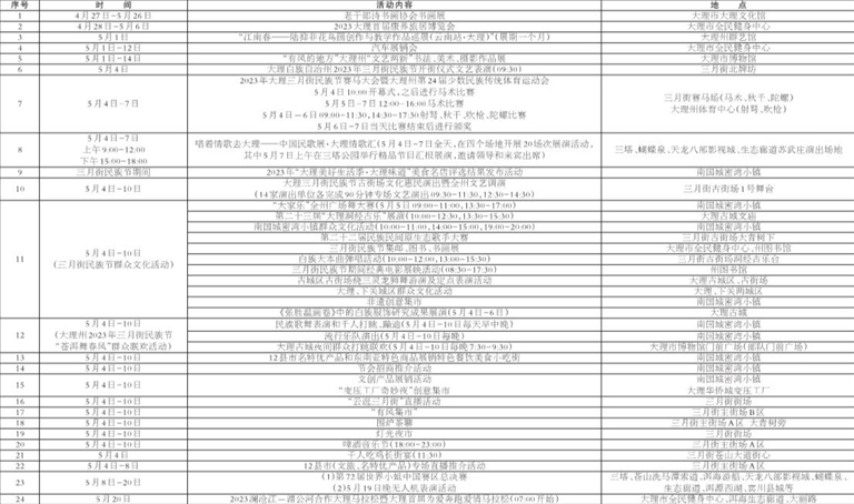 大理白族自治州2023年三月街民族節主要活動安排一覽表