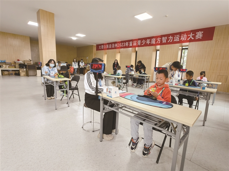 本報訊(通訊員 楊曦泠 文/圖) 6月10日,由大理州文化和旅游局主辦,大理州圖書館、漫索科技有限公司承辦的全州首屆青少年魔方智力運動大賽在州圖書館舉行。