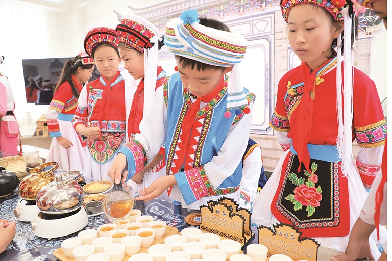 “大理州實驗小學扎染、三道茶等校本特色課程的開發,是對非物質文化遺產的保護和實踐。”白族扎染技藝州級代表性傳承人張翰敏說,這些課程的開發,讓孩子們可以真正回歸自然、回歸鄉土,感受大理歷經千百年的非遺之美、文化之美、生活之美,同時也為非遺傳播和傳承注入了青春的力量。