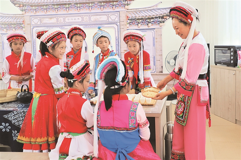 6年來,從“進”校園到“駐”校園,大理州實驗小學的非遺傳承落地生根,并結出豐碩的成果。2018年,在云南省中小學幼兒園優秀校本課程征集評選中,該校校本特色課程《大理白族歌舞》獲一等獎、《大理白族扎染》獲三等獎;2019年,學校申報的《大理白族藝術傳承創新與學校教育的融合》入選第五屆中國教育創新成果公益博覽會;2023年,學校《傳承白族傳統文化 創建民族特色學校》獲得云南省教學成果獎二等獎,教師歐陽劍萍的課例《民族之花——扎染》成功入選云南省2023年中小學“學科德育特色課堂”。