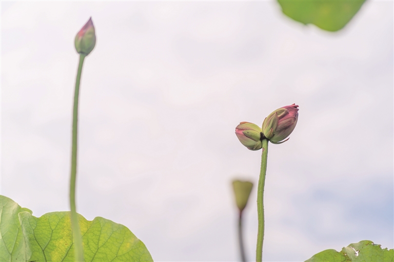 8月21日,在洱源縣右所鎮東湖濕地,攝影愛好者拍到了2株粉紅色并蒂蓮。這2株并蒂蓮一莖兩花,藏在荷葉間,隨微風輕輕搖曳,清麗又脫俗。