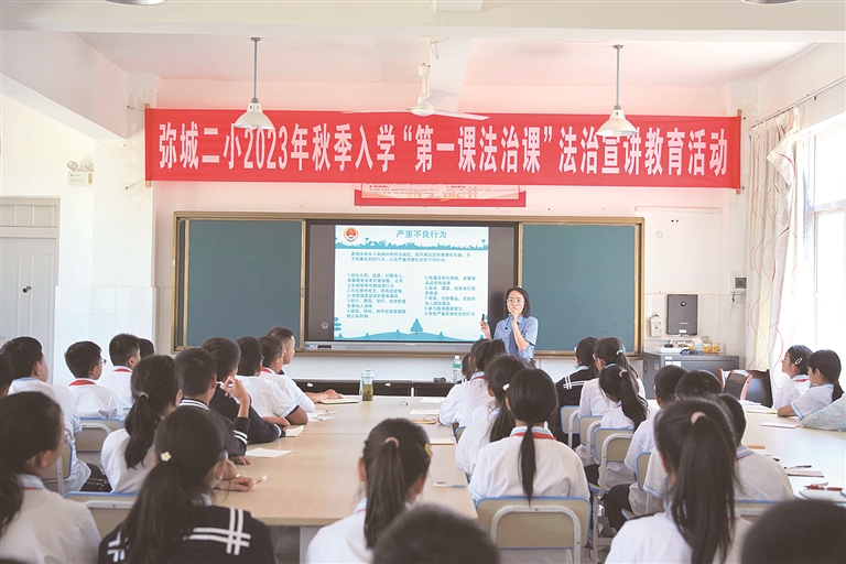 9月4日,南澗縣62所中小學與全州同步開展2023年秋季入學“學期第一課法治課”法治宣傳教育活動,進一步增強未成年學生的法律意識和法治素養,護航青少年健康成長。