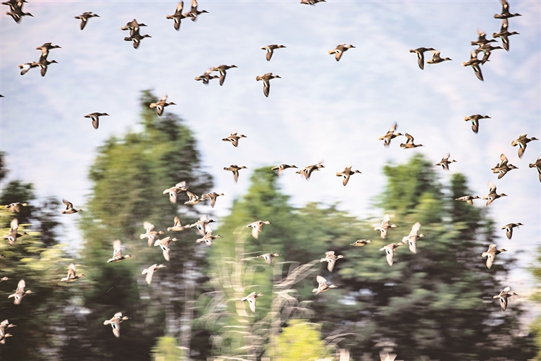 首批候鳥——綠翅鴨到達(dá)洱源東湖濕地,在廣袤的濕地里,或悠然覓食,或輕歌曼舞,或低飛掠過水面,或沖向高空飛翔,一幅萬鳥歡飛的生態(tài)美景令人沉醉。