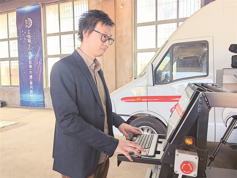 “這是一臺無人駕駛觀光車,在洱海生態廊道已完成智能駕駛功能測試,將來可在旅游景點投放,可以無人駕駛也可以手動操控,游客可以隨心選擇,很方便。”工業級5G創新應用(大理)研究院院長助理張大霖介紹說。