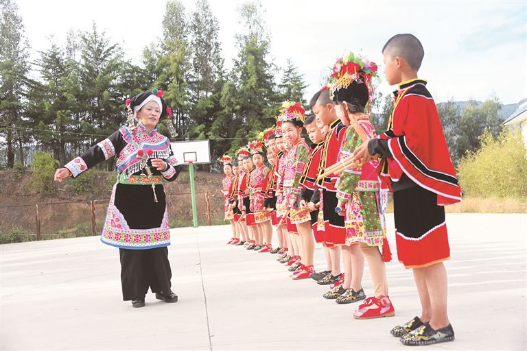 “20多年來(lái),‘山妮惹’打歌隊(duì)里的孩子換了一批又一批,正是在這樣的變換中,我們將彝族傳統(tǒng)打歌傳播給了更多的孩子。”12月4日,巍山縣巍寶山鄉(xiāng)中和小學(xué)操場(chǎng)上,正在指導(dǎo)孩子練習(xí)彝族少兒打歌的教師李曉倩告訴記者。