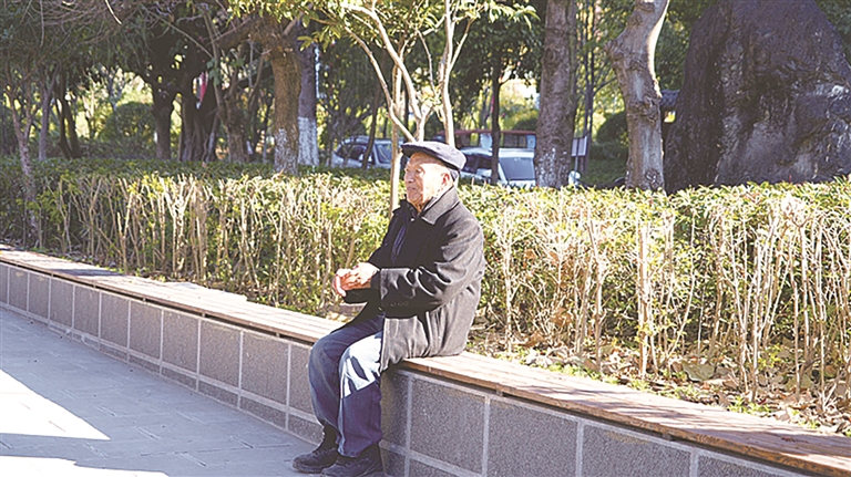 漾濞縣蒼山西鎮人民政府實施“拆墻透綠”工作后,附近81歲的居民趙安慶散步經過此處,走累了就坐在長凳上休憩。他說:“以前都是圍墻,現在拆除了,我們老年人散步的時候可以坐在這里休息一下,緩緩氣,精神也更好?!?/p>