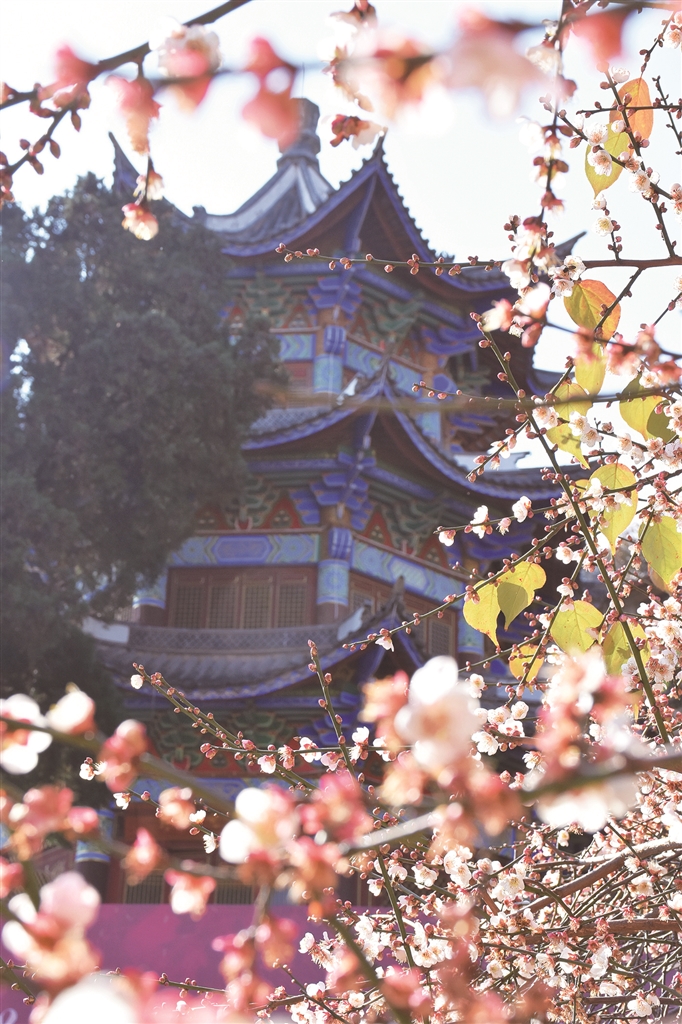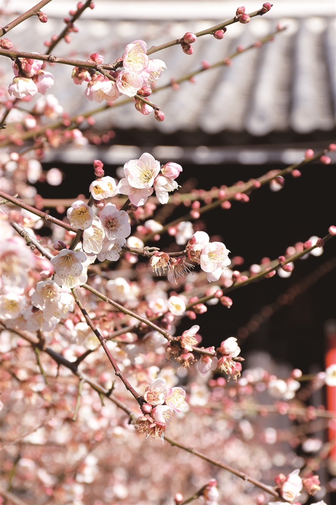 與周圍的古風長廊、悠悠古寺、鄉愁古建交相輝映,元梅清逸幽雅的氣韻更加凸顯。清新淡雅的梅花相繼綻放,一朵朵、一團團、一簇簇,為博南古道增添了許多生機與活力。