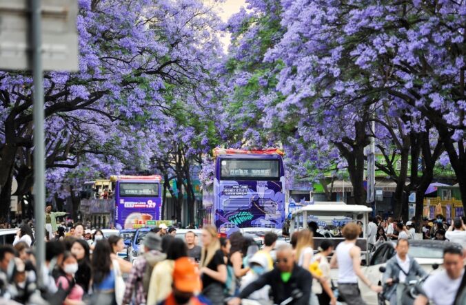 昆明花卉資源豐富,用“春城無處不飛花”的美好詩句形容昆明最為貼切,每年冬春季,紅塔西路、圓通街、彩云路等大街小巷的冬櫻花、櫻花次第開放,日新路、廣福路、北京路、二環(huán)路、和諧路、大觀公園等地月季花團錦簇;春夏之交,教場路、前衛(wèi)西路、盤龍江畔藍花楹開放,吸引市民游客拍照打卡。