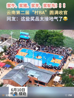 牽牛拉羊、抓鵝扛豬……頒獎環節,獲獎球隊隊員肩挑手扛,將牛、羊、豬、鴕鳥、土雞等“農味”“土味”十足的獎品帶回家,現場一片濃濃的喜慶氛圍。球員、游客和球迷觀眾無不深切感受到了“無籃球、不中屏”的獨特籃球體育文化魅力。“今天頒發的獎品‘村’味十足,我覺得很有特色、很接地氣、也很實在,這就是‘村BA’的樣子!”村民張大哥說。