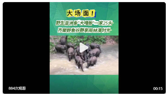 6月12日9點20分左右,野生亞洲象“大嚕胞”一家25頭齊聚西雙版納野象谷景區,在景區觀象臺可以看到,它們在雨林悠閑漫步,在水中嬉戲玩耍,靜享雨林慢時光~
