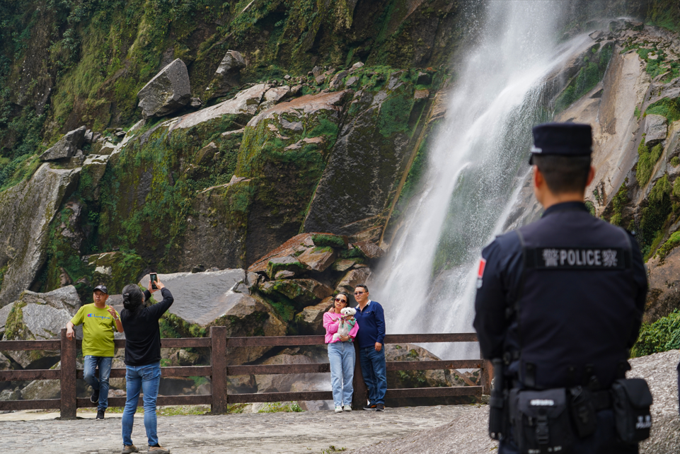 民警守護游客打卡。獨龍江邊境派出所供圖 余潤強攝