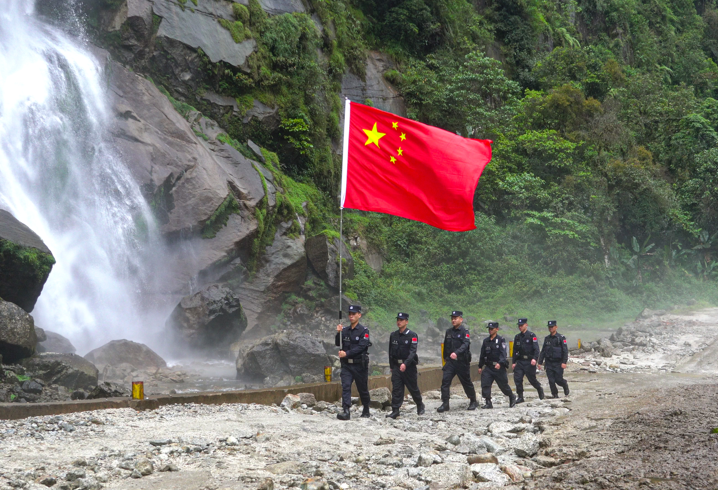 哈滂瀑布下巡邏。獨龍江邊境派出所供圖