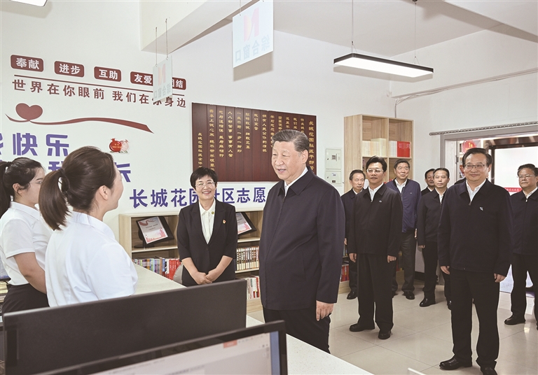 習(xí)近平來到社區(qū)居民趙守成家中,同一家人圍坐在一起拉家常,了解他們的就業(yè)、收入、醫(yī)保報(bào)銷、孩子上學(xué)等情況,為他們的幸福生活點(diǎn)贊,鼓勵(lì)孩子德智體美勞全面發(fā)展。趙守成告訴總書記,當(dāng)?shù)攸h委和政府十分關(guān)心社區(qū)建設(shè),特別是在改造老舊小區(qū)、豐富居民文體生活等方面做了很多實(shí)事,各族群眾在社區(qū)里和睦相處,生活過得很舒心。習(xí)近平強(qiáng)調(diào),我們黨是全心全意為人民服務(wù)的黨,各族群眾、家家戶戶都是我的牽掛。希望你們把家庭建設(shè)搞得更好,讓日子越過越紅火。