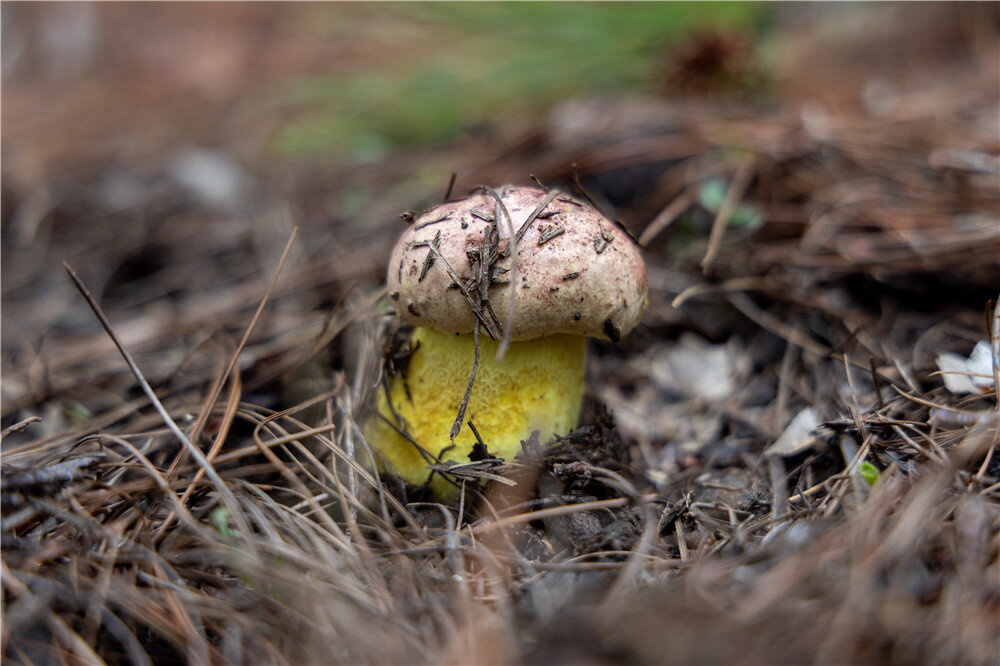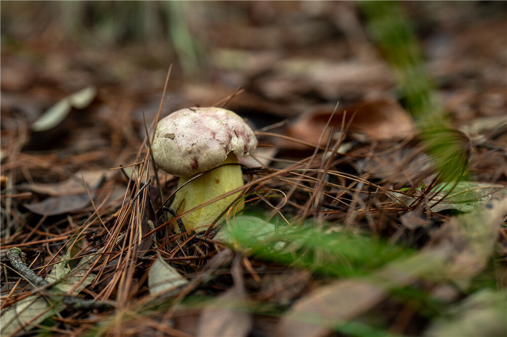 小心翼翼地穿梭在樹林中,目光急切地搜尋著那隱藏在落葉與草叢間的珍饈,這是一場與野生菌的奇妙偶遇。