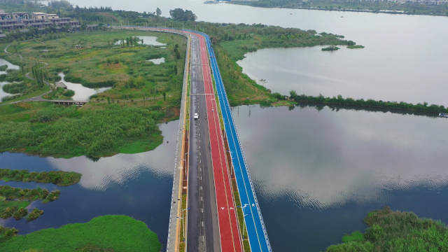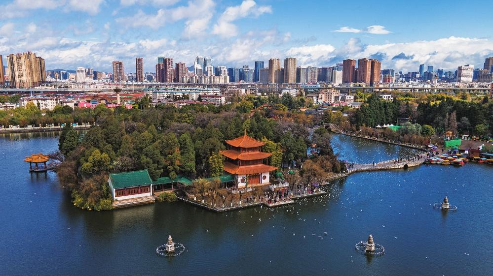 此外,作為一處巨大的天然水體,昆明的自然地標滇池對氣溫也有一定的調節作用。由于水的比熱容較大,又具有蒸發散熱的特性,所以吸收太陽輻射能被加熱時,水體周邊的氣溫上升比單純的陸面要慢;而到了晚上,水的降溫又比較慢,為周圍陸地起到了熱量緩沖的作用。