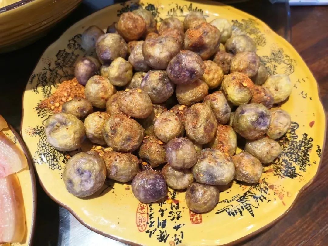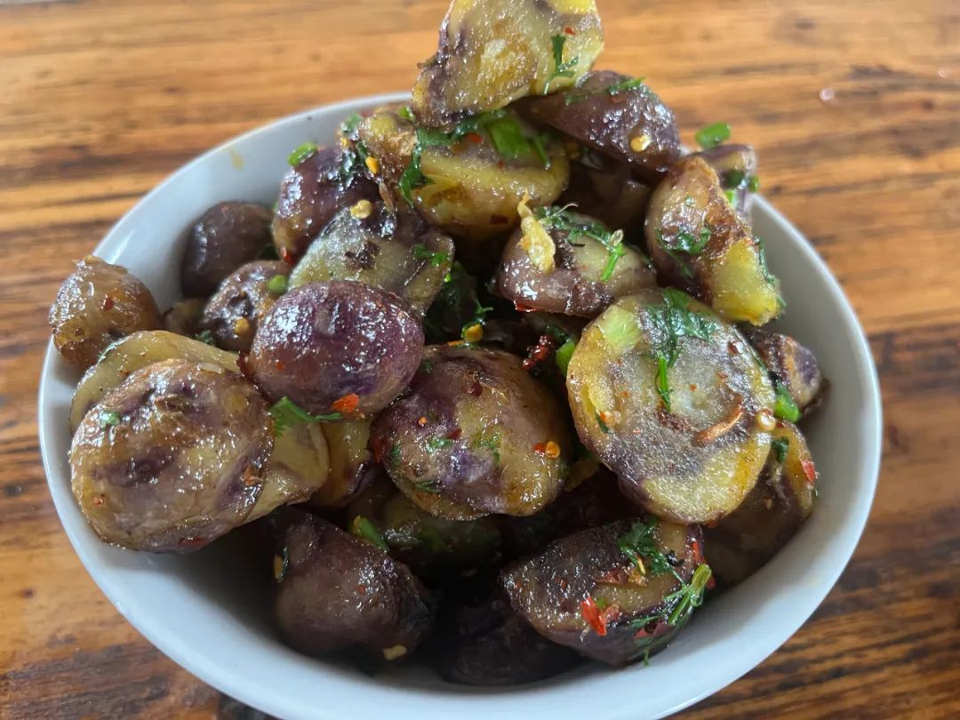 外酥里嫩的炸炒紫洋芋、燒洋芋