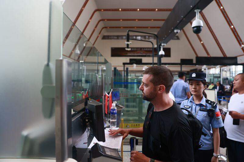 7月20日,磨憨鐵路口岸迎來首位144小時過境免簽旅客。