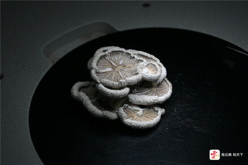 “果菌王”上長出的蘑菇,俗名白參,學名裂褶菌,在云南也常被稱作八擔柴,在陜西叫樹花,在湖北叫雞毛菌,在湖南叫雞冠菌。它是一種食藥兼用的大型真菌,富含人體必需的氨基酸、礦物質元素等營養成分。