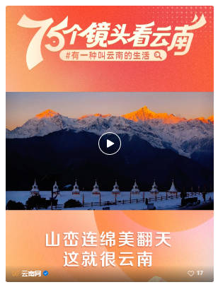 為獻禮中華人民共和國成立75周年,云南網聯合云南發布、“學習強國”云南學習平臺共同策劃推出“喜迎新中國成立75周年 75個鏡頭帶你看云南”融媒專欄,在7月18日至9月30日期間,一天一推,連續推出75條短視頻,聚焦最具云南味兒的山、水、風、物、人,用細膩鏡頭、新穎表達、明快節奏、酷炫畫面,再現最奇特的山水風光、最地道的民族風情、最深厚的文化底蘊、最絢麗的民間藝術、最原汁原味的美食,全方位展現“有一種叫云南的生活”。今天,請看第三十期——《山川連綿美翻天,這就很云南》。