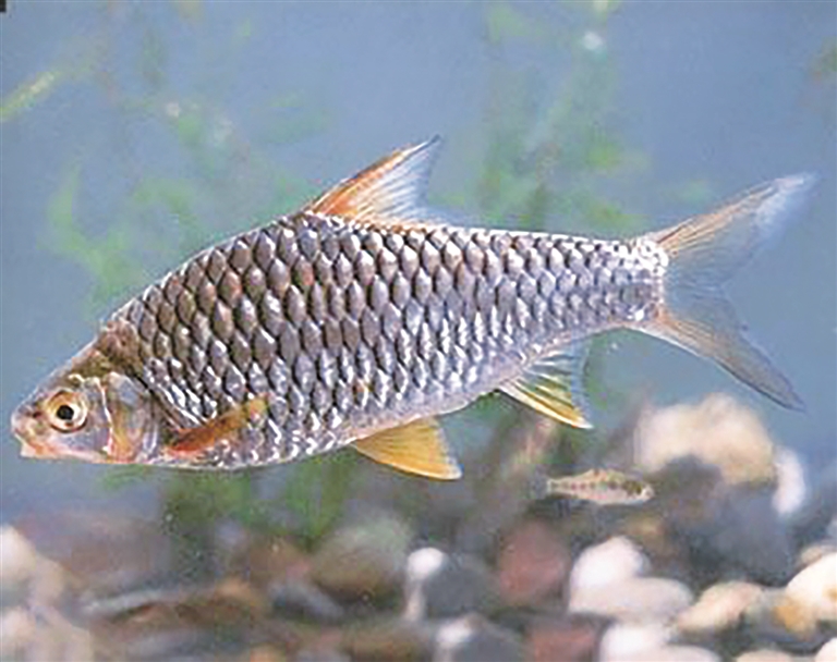 長背鲃 分布:云南省西雙版納的瀾滄江下游。 身體呈銀白色,體側有黑色的細小縱紋,鰭上散布細小金屬斑點,在燈光下若隱若現。