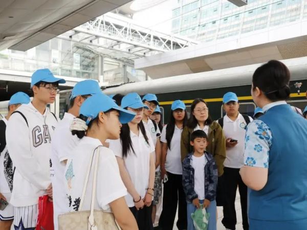 7月21日,實踐團第十小分隊前往昆明站和昆明南站調研。實踐團在工作人員的帶領下參觀了中老鐵路0公里標志,認真學習領會習近平總書記在中老鐵路通車儀式上的重要講話精神。隨后,實踐團成員搭乘中老鐵路專線列車,在列車上與乘客交談,深入了解他們對于中老鐵路開通后生活變化的直觀感受。當天下午,實踐團還開展了“路相通、心相連”主題學習活動。