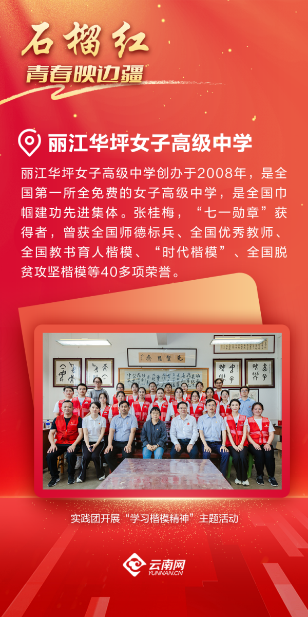7月13日,實踐團第一小分隊走進麗江華坪女子高級中學,參觀了張桂梅事跡陳列室、紅色文化長廊等,開展“學習楷模精神”主題活動。